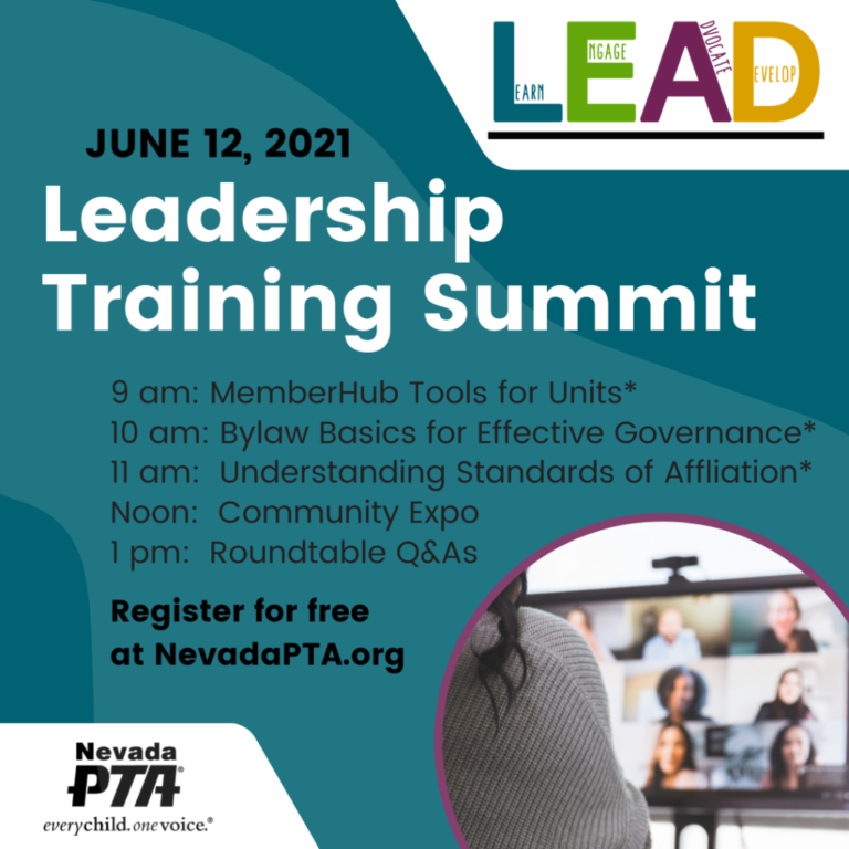 Nevada PTA has launched a series of virtual events including the Moving Forward Town Hall Series and Virtual Thursdays offering trainings and workshops for our members. Please visit the event page for more information and access to video from prior events.